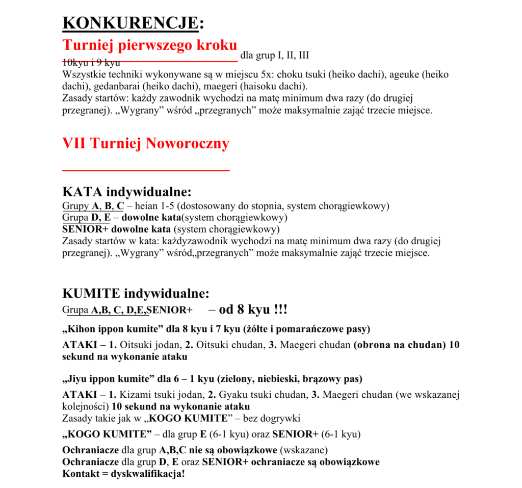 Treningi w Ferie Uwaga Uruchamiamy grupy dyżurne Ponieważ Instruktorzy wyjeżdżają m.in. na obozy, nie wszystkie sekcje pracują w Ferie zgodnie z regularnym grafikiem. Zapoznajcie się z harmonogramem i miejscówkami feryjnymi Weźcie pod uwagę wybierajac trening swoje stopnie/kolory pasów. Sprawdźcie godziny zajęć bo w niektórych grupach różnią sie nieco od standardowego grafiku. W razie pytań proszę o kontakt 608 661 245.